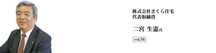 (にのみや・たかのり)1946年愛媛県生まれ。大手住宅メーカーを経て、97年、株式会社さくら住宅を設立。「リフォームを通じて、社会のお役に立つ会社になる」を企業理念とし、「会社は『社会の公器』である」と言う信条のもと、小工事も大切に地域に密着したリフォーム会社を経営。「お客様株主制度」や「さくらラウンジ」の開放等、特色のある取組みや18期連続黒字経営などが評価され、15年3月「先進的なリフォーム事業者」経済産業大臣賞受賞、「第5回日本でいちばん大切にしたい会社」大賞審査委員会特別賞受賞。